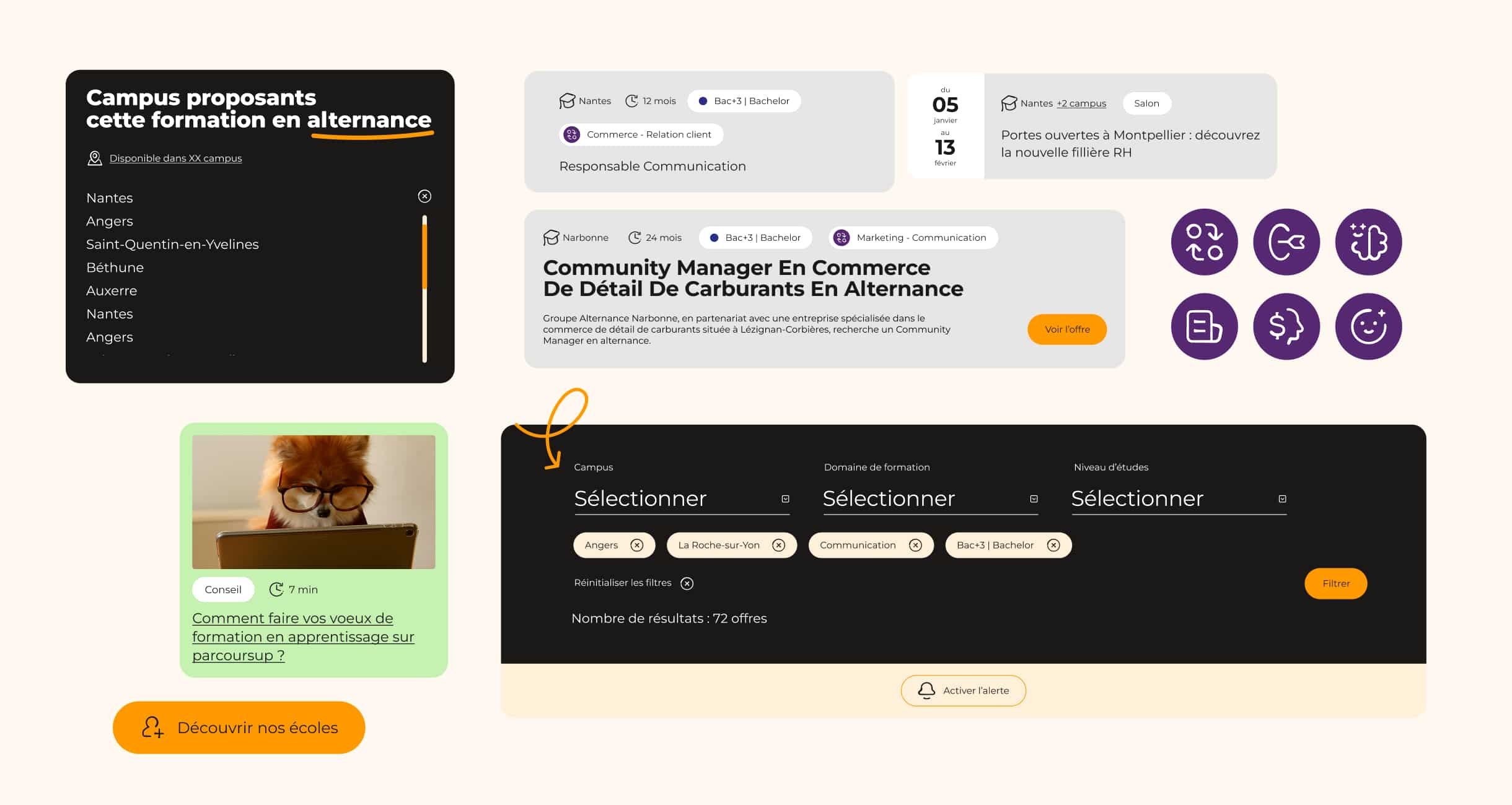 - Carte dynamique des campus pour localiser facilement chaque établissement du groupe.
